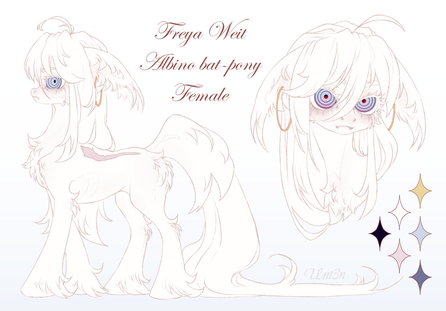 My other alter ego is the bat-pony, Freya. All that remains of her wings are the scars on her back. She is an albino.