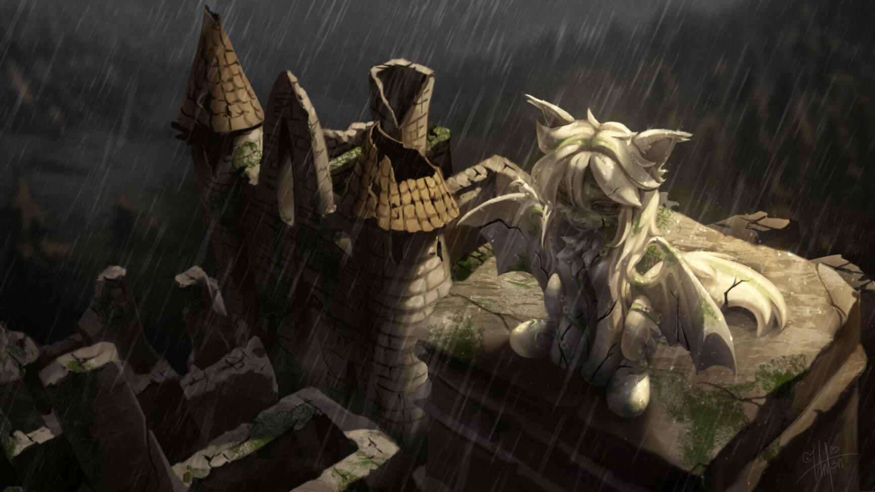 My other alter ego is the bat-pony, Freya. All that remains of her wings are the scars on her back. She is an albino.