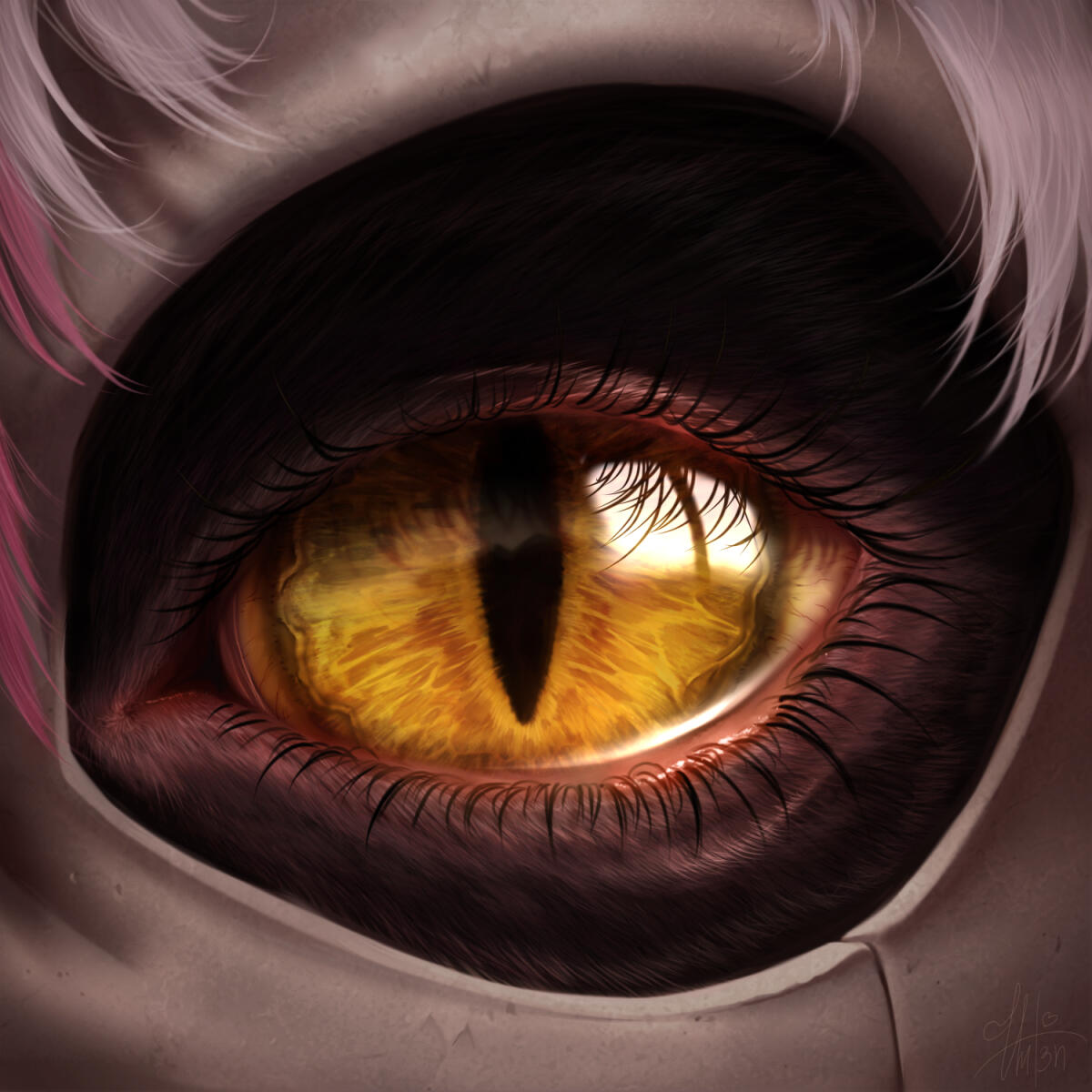 My alter ego, a white cat with no name. The tips of her tail and ears turn black, which is covered with stars. She has a large scar on her body that starts on her chest and ends on stomach.